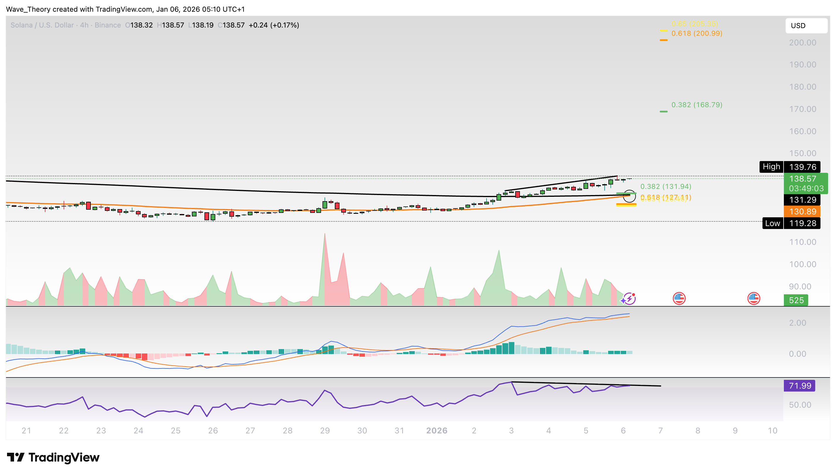 Der Solana Kurs hat bereits den 50-Tage-EMA Widerstand bei rund 136,4 USD überwunden