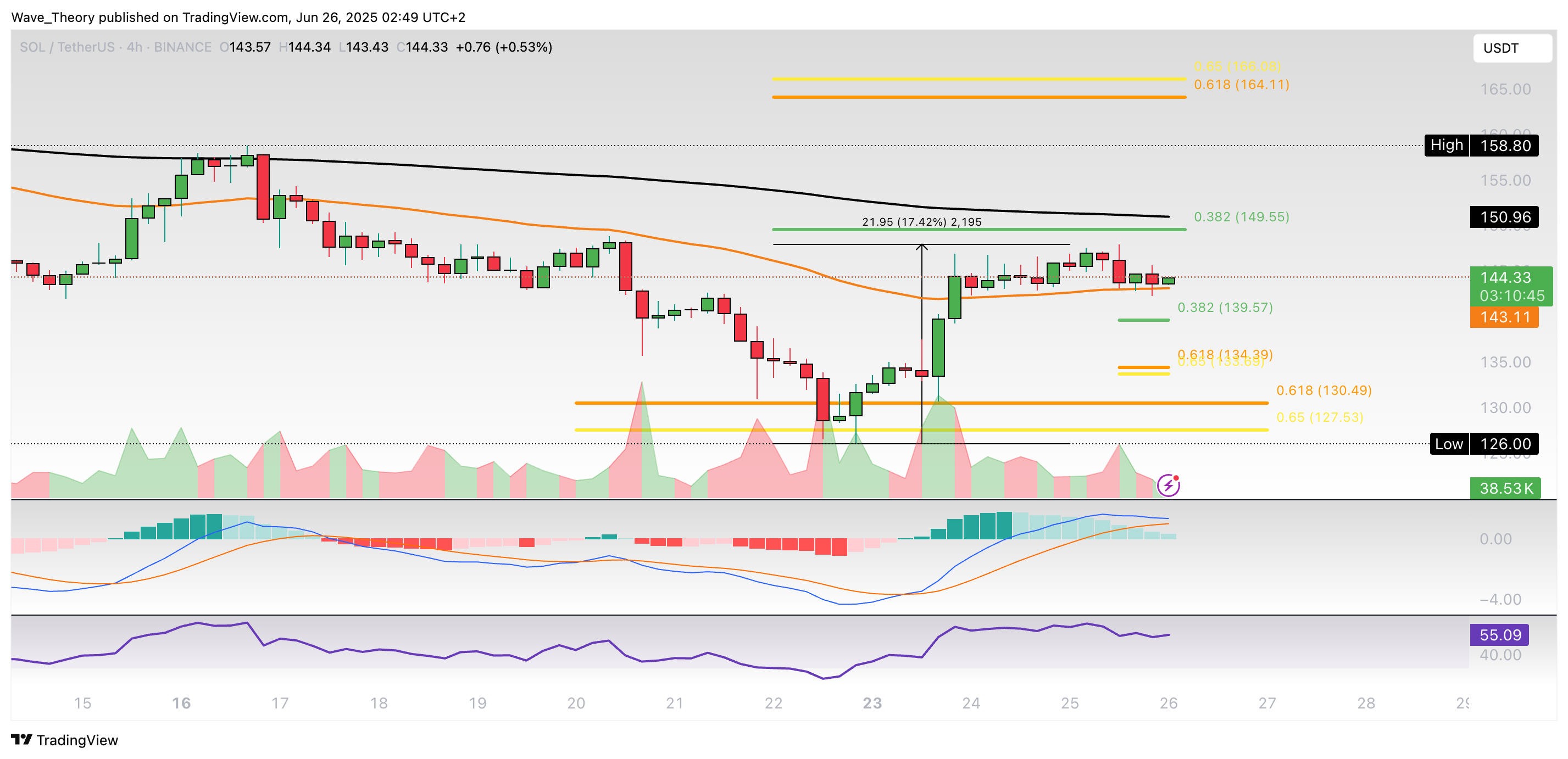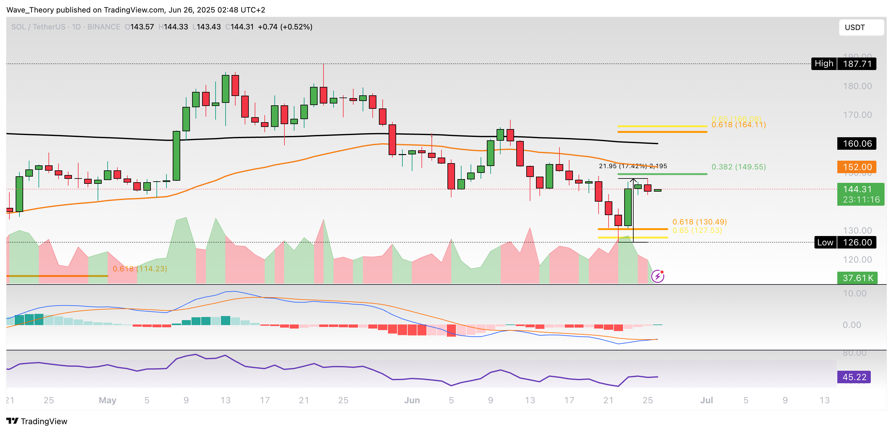 Solana-Prognose für Donnerstag. 26. Juni: Der Solana Kurs konnte an der Golden Ratio Unterstützung bei rund 130 USD bullisch abprallen.