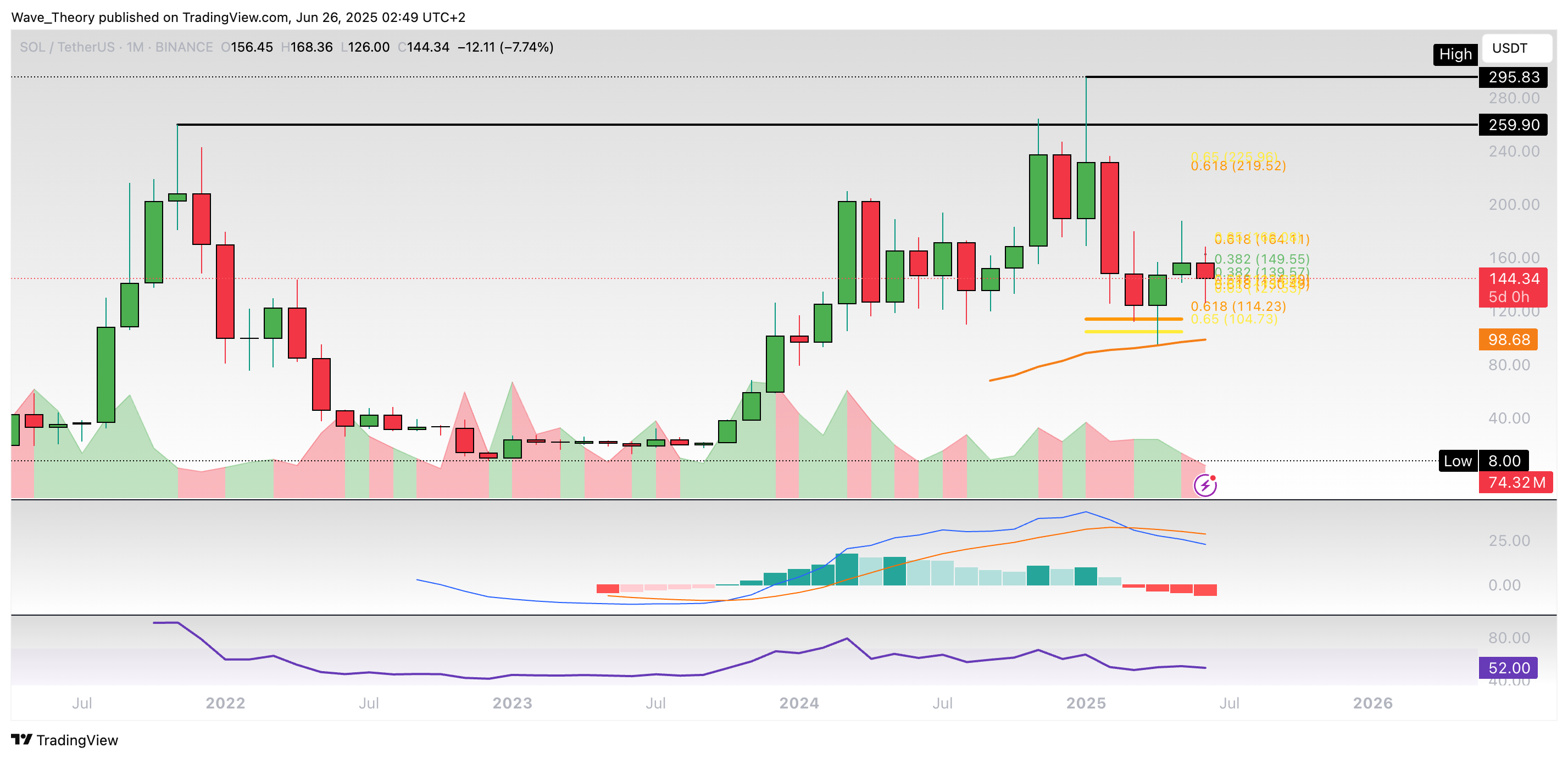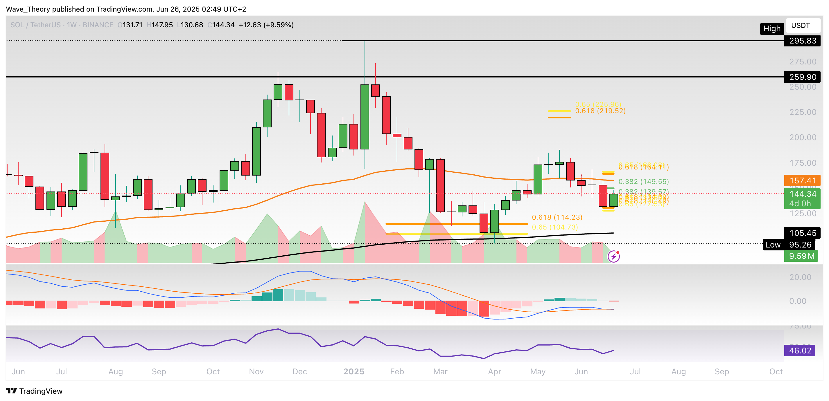 Um die Korrekturbewegung vollständig zu beenden, muss Solana die Golden Ratio bei rund 165 USD brechen. Erst dann kann Solana das letzte Hoch bei rund 188 USD anvisieren.