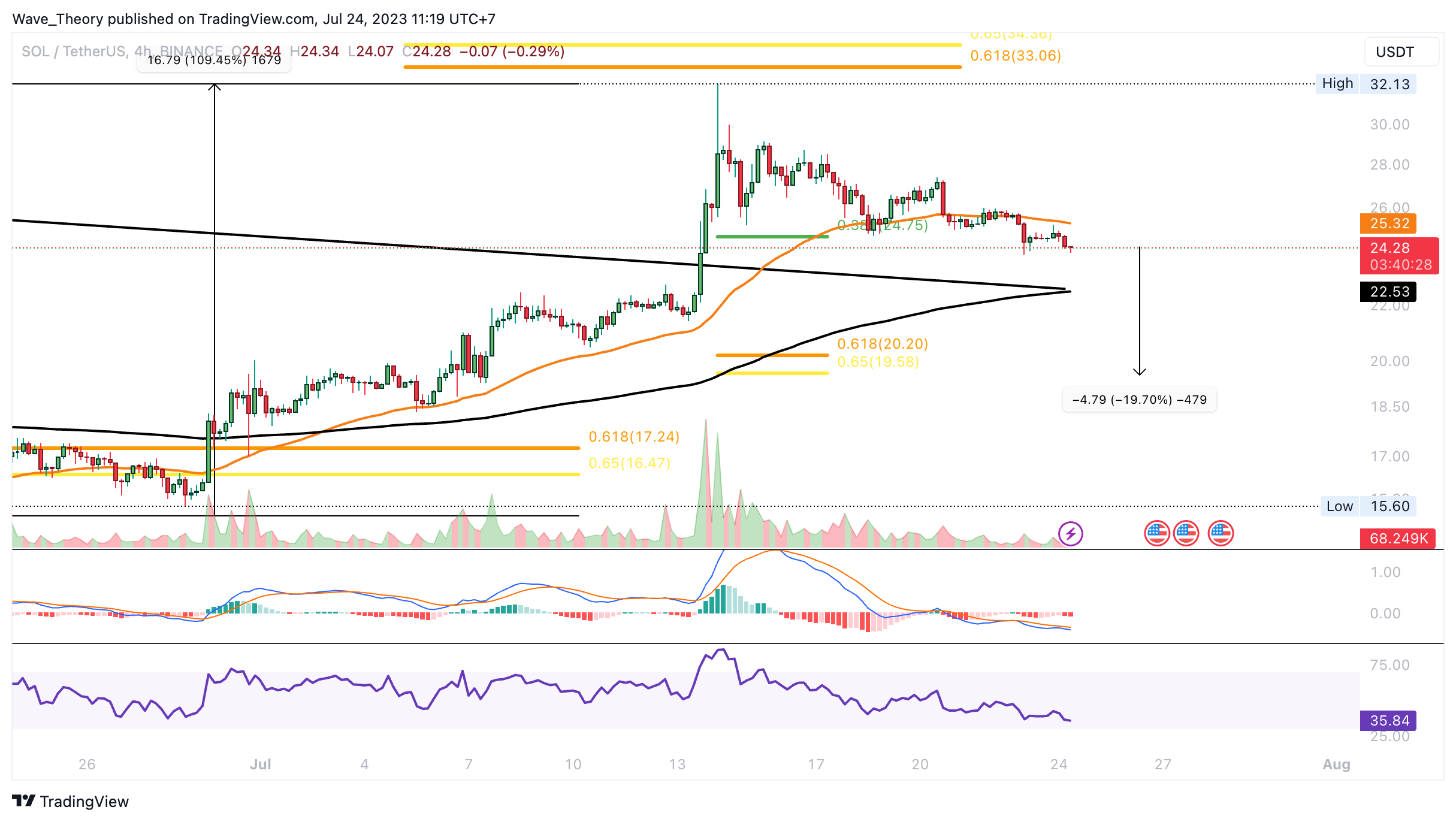 SponsoredDer Solana Kurs bricht die 0,382 Fib Unterstützung bei rund 24,65 USD bärisch