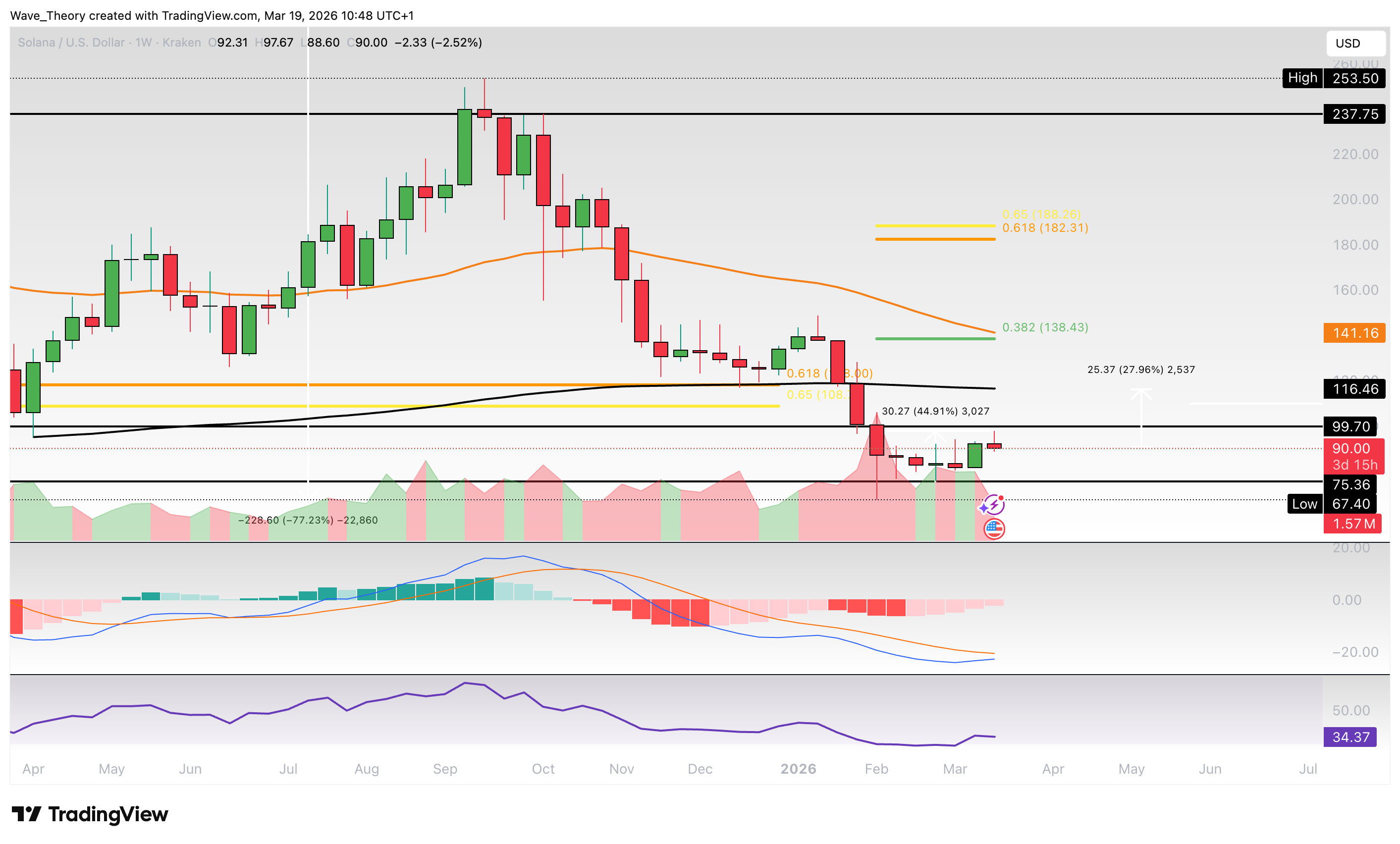 Im Wochenchart von Solana geben die Indikatoren bullische Signale