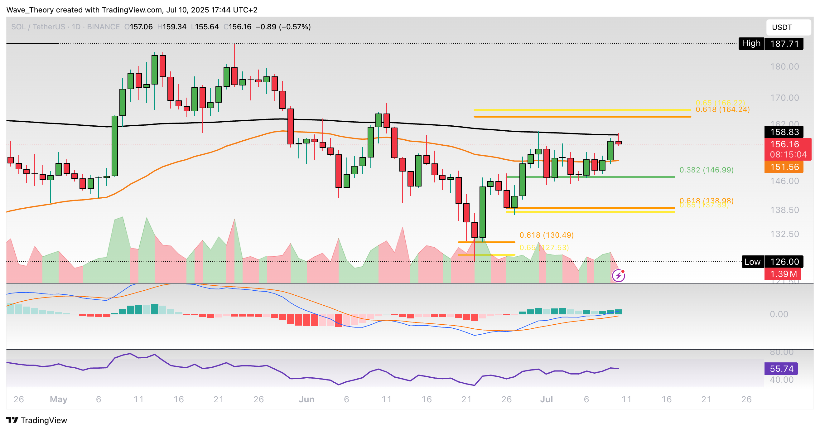 Mit dem Bruch der Golden Ratio bei rund 165 USD könnte Solana zum letzten Hoch bei rund 188 USD zurückkehren. Davon abgesehen geben die Indikatoren gemischte Signale im Tageschart.