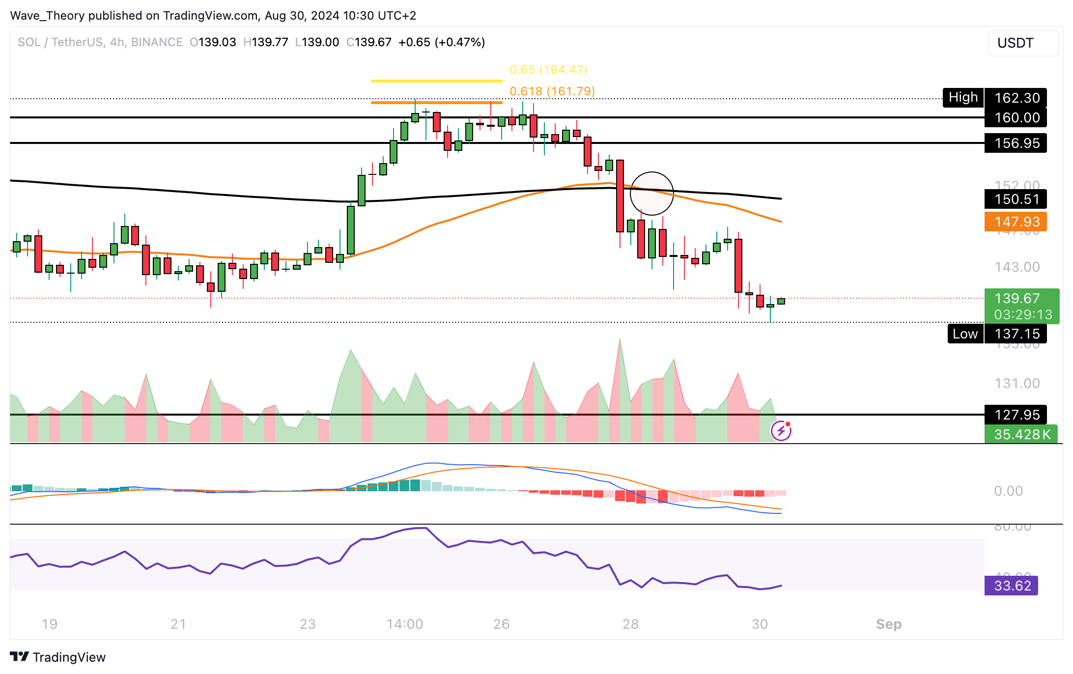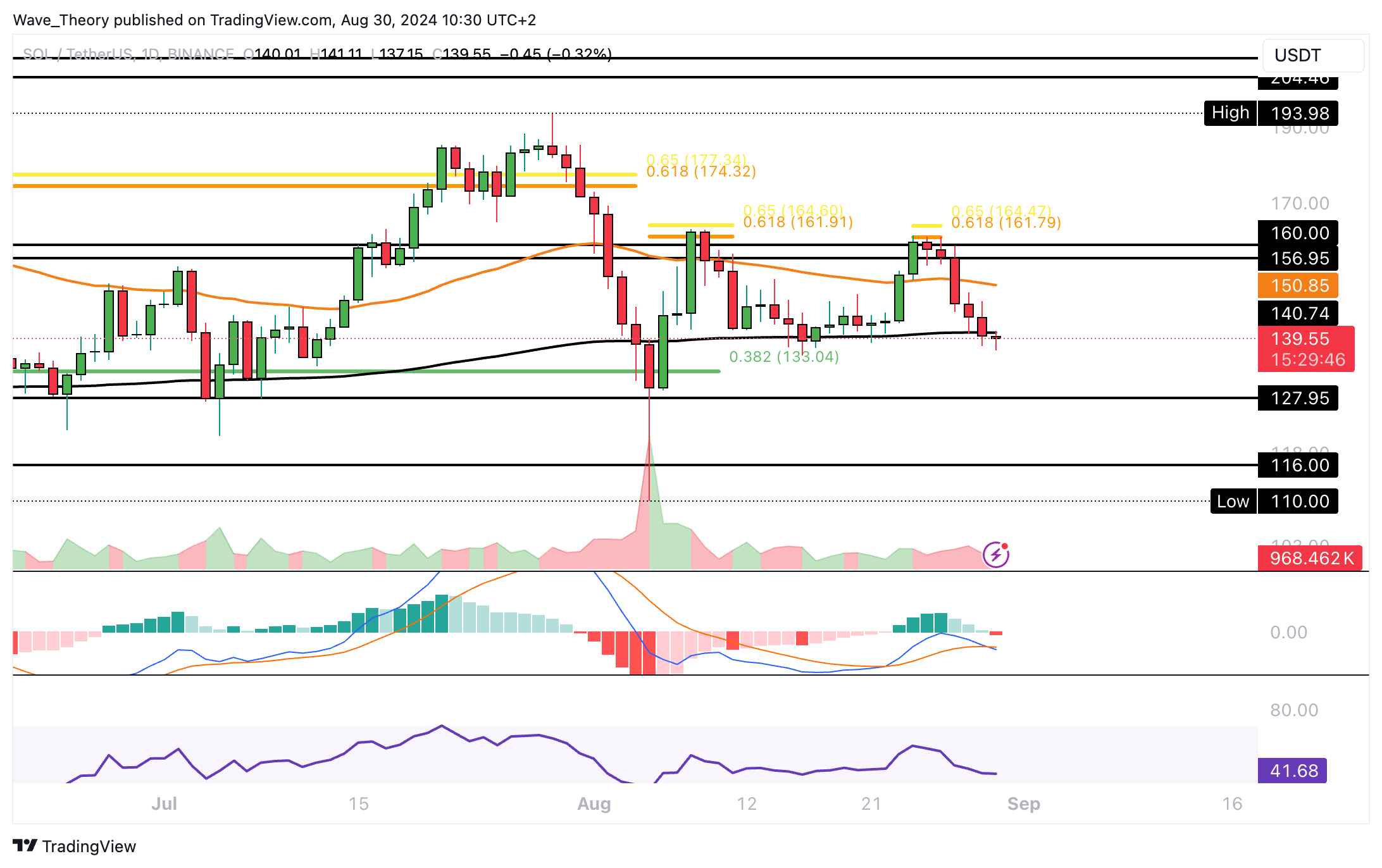 Vor wenigen Tagen hat Solana den Golden Ratio Widerstand bei rund 162 USD erreicht, woran der Kurs bärisch abgewiesen wurde. Damit befindet sich Solana jetzt am 200-Tage-EMA bei rund 141,7 USD.