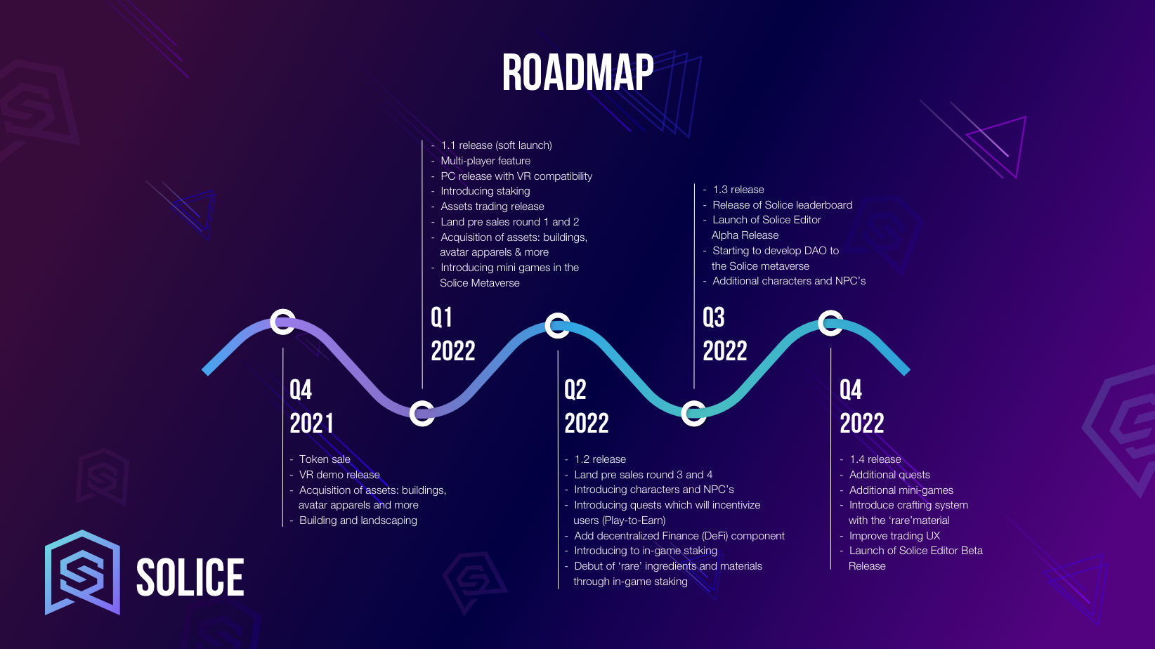 Laut der Solice-Roadmap könnte bereits im ersten Quartal 2021 die erste Version des Solana-Metaverse erscheinen. Das Metaverse soll von Anfang an VR-kompatibel sein und einen digitalen Asset-Marktplatz enthalten. Darüber hinaus werden beim Release die ersten LANDs verkauft.