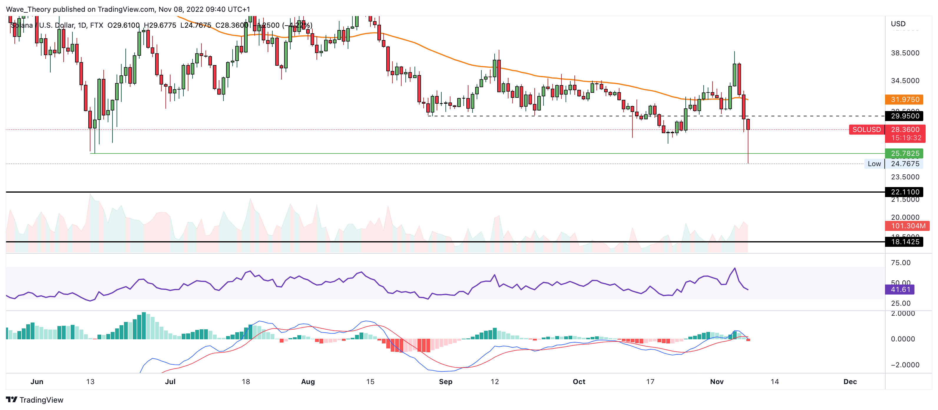 Nachdem sich der Solana Kurs wochenlang über der 30 USD Marke halten konnte, ist der Solana Kurs jetzt unter das vorherige Jahrestief von rund 26 USD gefallen. Zuvor erreichte der SOL Kurs einen lokalen Hochpunkt bei rund 39 USD.