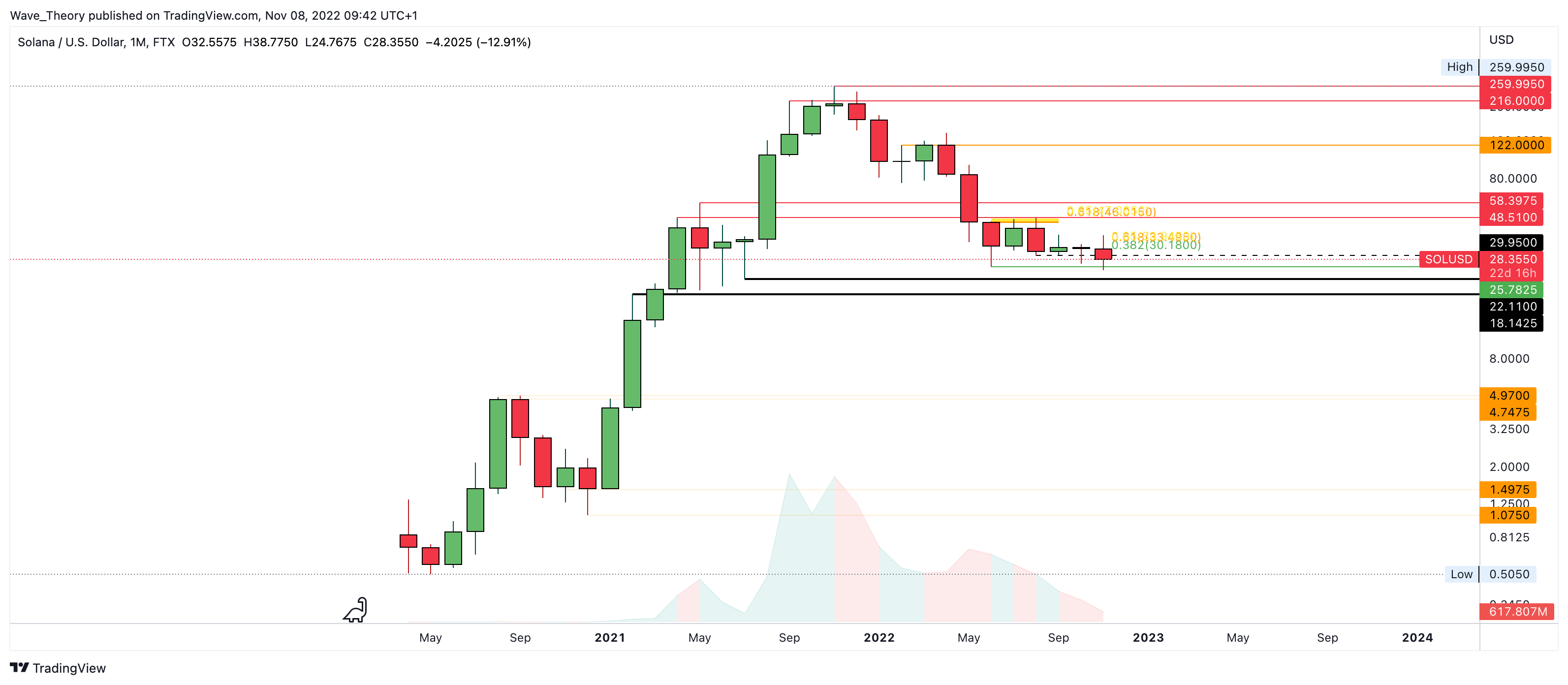 Es ist also nicht ausgeschlossen, dass Solana in diesem Bärenzyklus noch auf rund 18 USD fallen wird. Nach oben hin fungieren vor allem die Fib Niveaus bei rund 30 USD und 34 USD nun als wichtige Widerstände.