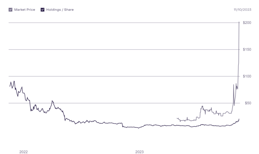 Transaktionen mit SOL Aktien auf dem Sekundärmarkt erreichten am 10. November einen Kurs von bis zu 202 USD. Dies ist ein erheblicher Anstieg im Vergleich zu den 20 USD, die im selben Zeitraum bei Primärverkäufen (Holdings) erzielt wurden.