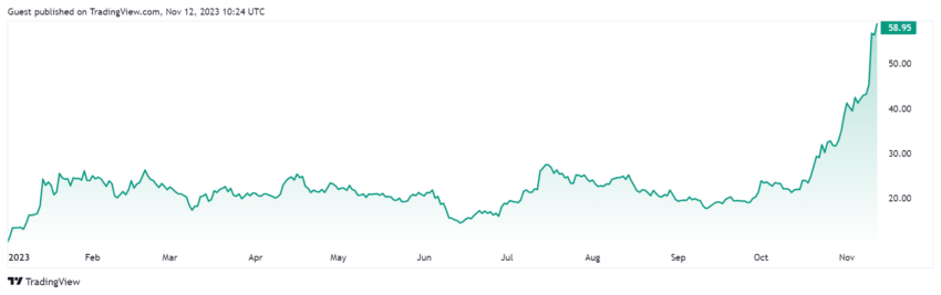 Solana verzeichnet einen deutlichen Preisanstieg auf über 60 US-Dollar und übertrifft damit die Gewinne anderer Kryptowährungen. Darüber hinaus zeigt der Grayscale SOL Trust mit einem beeindruckenden Anstieg von 800 Prozent die gestiegene Attraktivität. Dies verdeutlicht das steigende Interesse institutioneller Investor:innen an der Kryptowährung.