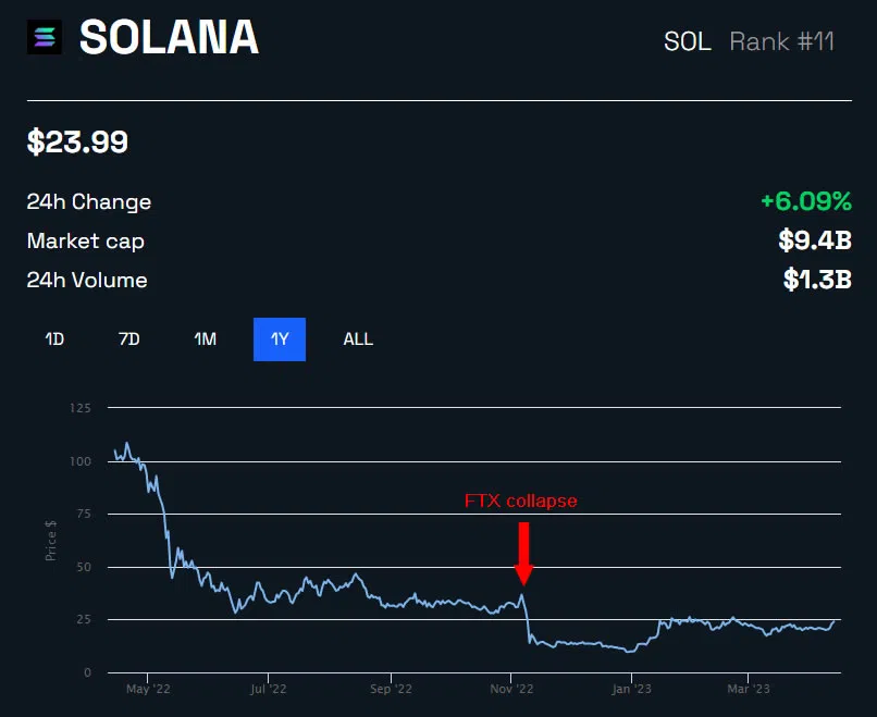 Der einst angepriesene “Ethereum-Killer” schien zusammen mit der Börse unterzugehen. Kein Wunder, wurde der Token doch vor allem von Sam Bankman-Fried, dem ehemaligen FTX CEO, unterstützt.