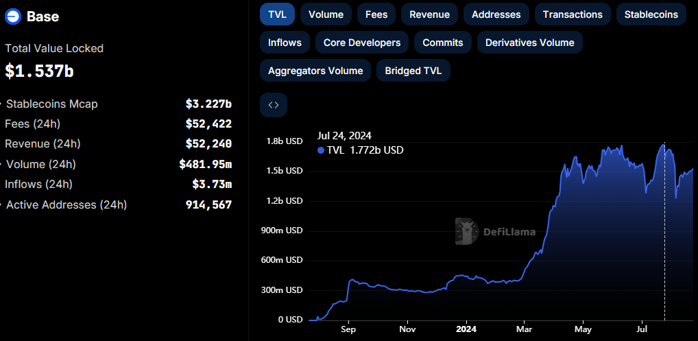Jedoch ist der TVL von Base seit seinem Höhepunkt im Juli von 1,772 Milliarden USD gesunken, wahrscheinlich aufgrund von Marktschwankungen und Bedenken über Memecoin-Schwachstellen.