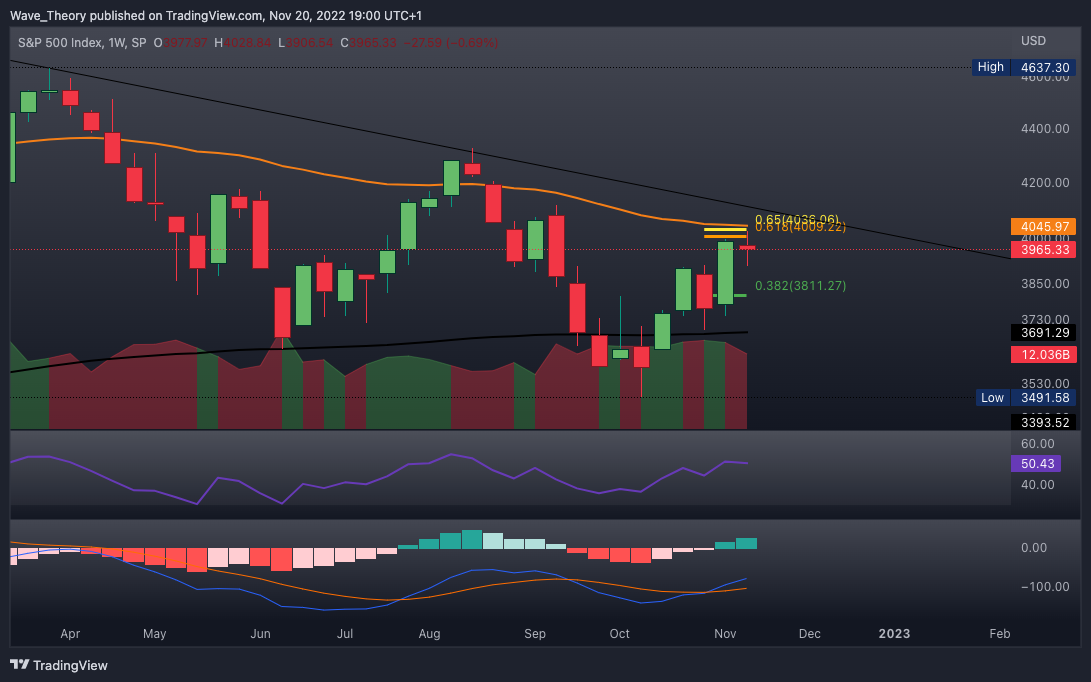 Sollte SPX bis zur Golden Ratio bei rund 4.010 steigen, wartet knapp darüber bei rund 4.070 noch signifikanter Widerstand am 50-Wochen-EMA.”