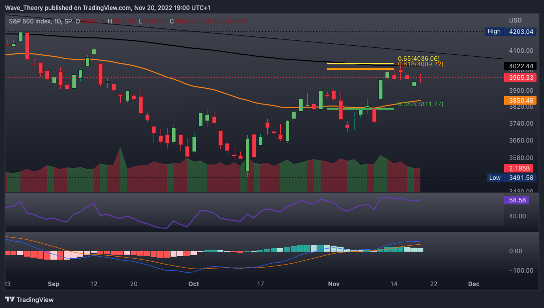 Der SP500 Kurs erreichte den Golden Ratio Widerstand bei rund 4.045
