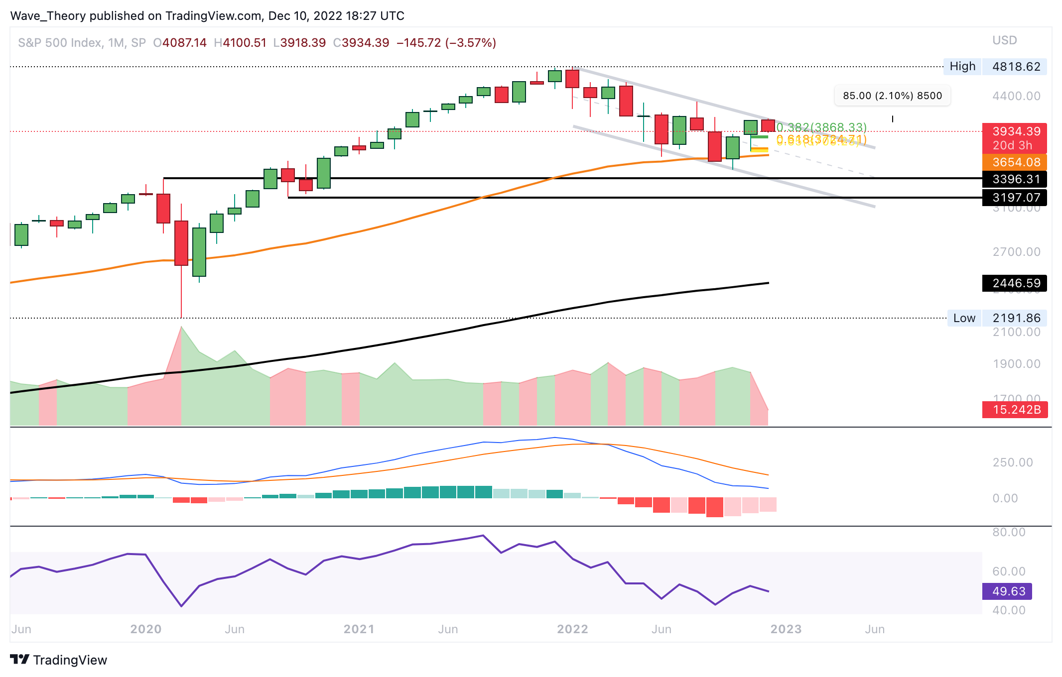 In der letzten S&P500 Kurs Prognose schrieben wir: “Der SP500 Kurs konnte am 50-Monate-EMA bei rund 3.638 abprallen und dabei den 0,382 Fib Widerstand bei rund 3.814 brechen. Darüber hinaus tickt das Histogramm es MACDs seit letztem Monat bullisch höher, während sich der RSI neutral zeigt.
