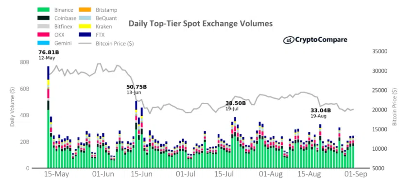 Bitcoin und Ethereum gelang es im August nicht, wichtige Widerstandsmarken bei 24.500 bzw. 2.000 US-Dollar zu durchbrechen. Angesichts dieser unsicheren makroökonomischen Bedingungen verließen Anleger sich bevorzugt auf die Top-Börsen.