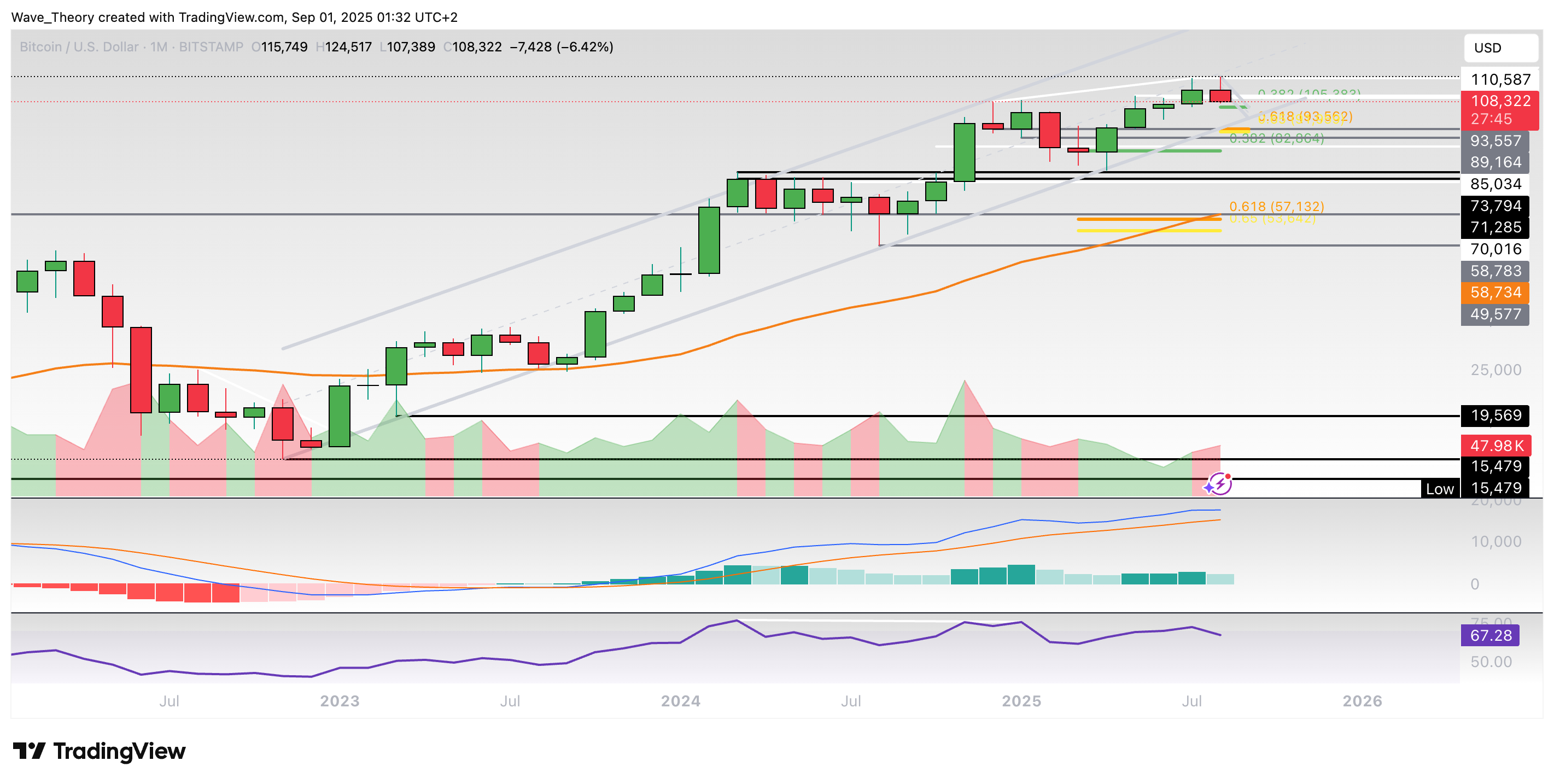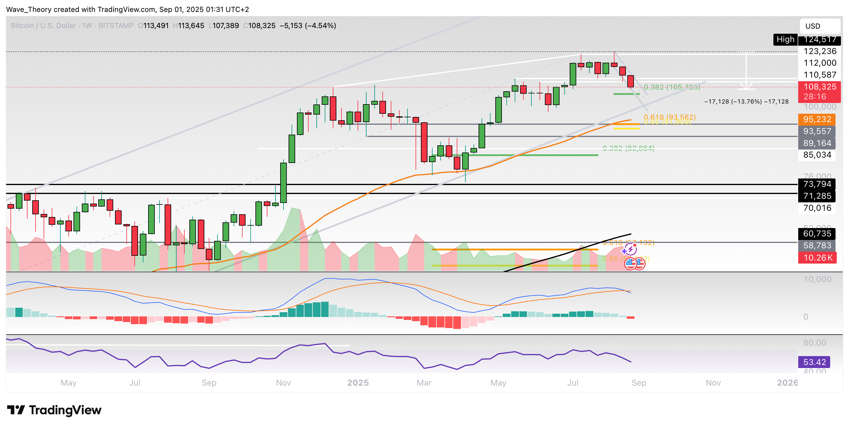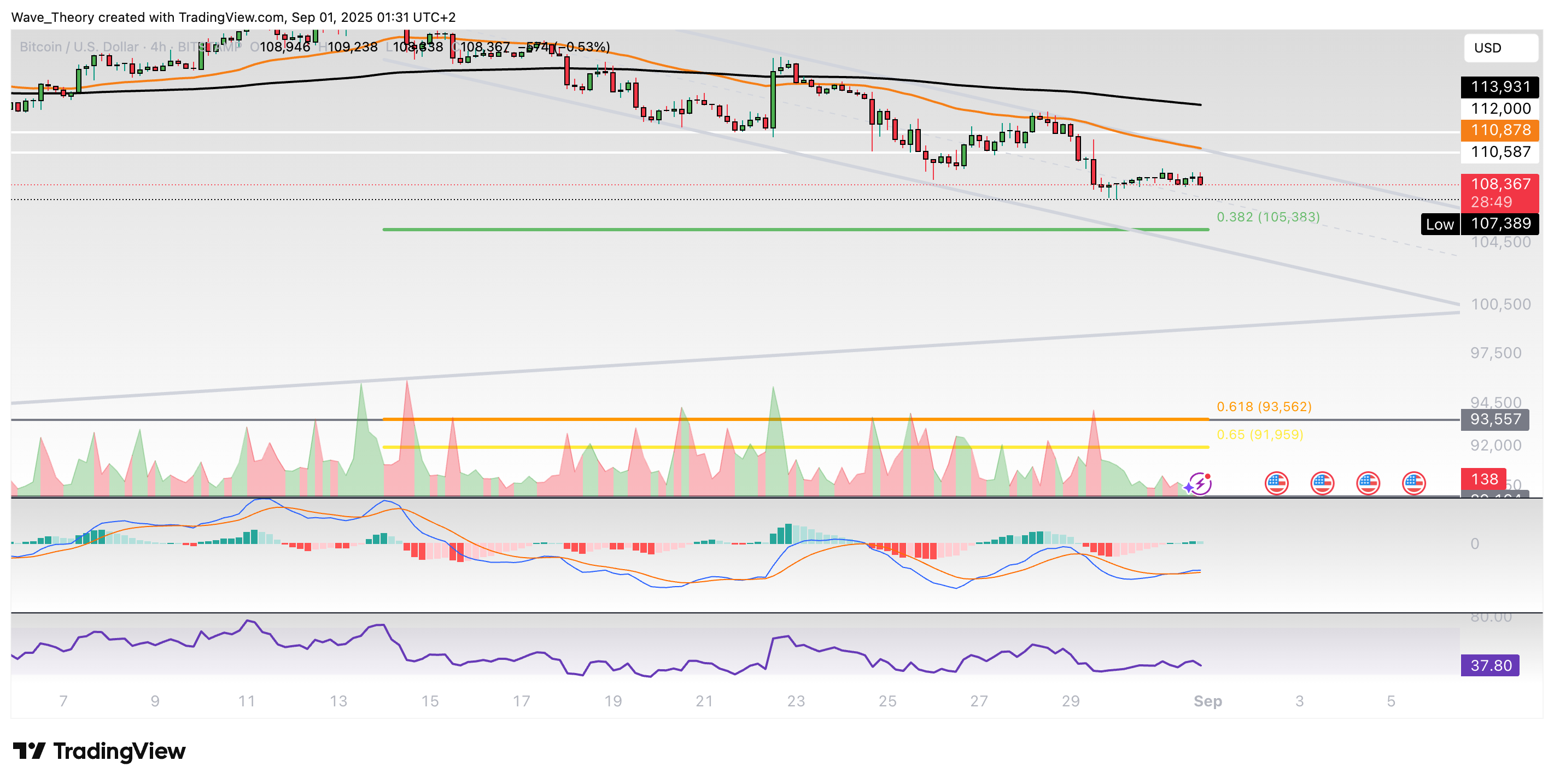 Bitcoin-Prognose für Montag, 01. September 2025: Der Bitcoin Kurs setzt die Korrektur fort und nähert sich der 100.000 USD Marke.