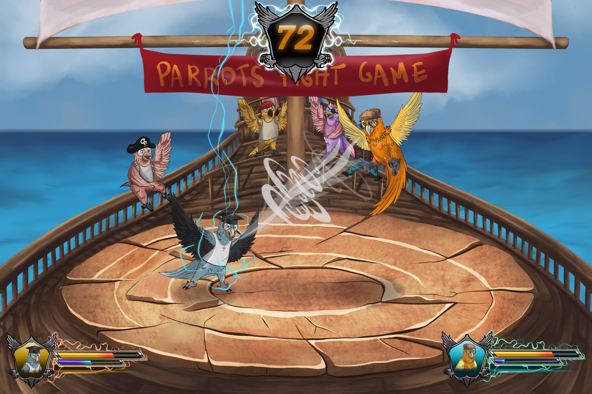 Aufgrund dieses angespannten Status quo beschloss die geheime Regierung der Papageien, ein Turnier zu veranstalten, bei dem die tapfersten Papageien kämpfen und ihre Namen für immer verewigen konnten (und sich dabei gleichzeitig auf eventuelle Feindseligkeiten vorbereiteten). So entstand der Parrots’ Fight Club.