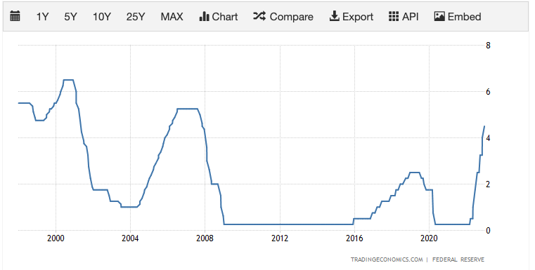 Die Federal Reserve tat es der EZB gleich, mit dem Unterschied, dass die Zinsen sofort auf fast 0 % gesenkt wurden. Daraufhin folgte während Donald Trumps Amtszeit eine Phase der starken Zinserhöhung.