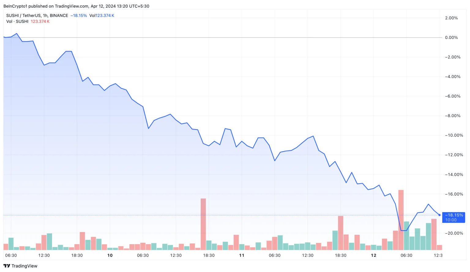 Diese Woche bringt erhebliche Turbulenzen für den dezentralen Finanzsektor (DeFi) mit sich. Nachdem die SEC gegenüber Uniswap schwere Anschuldigungen erhoben hatte, stürzt jetzt auch Sushiswap (SUSHI) um über 18 Prozent.