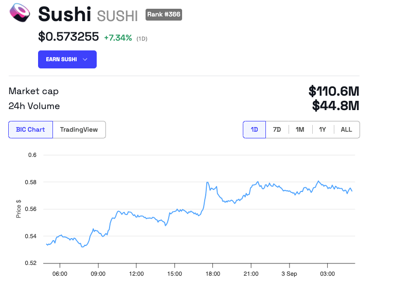 Das System funktioniert auf der Basiskette und bietet zusätzlichen Schutz vor Manipulationen durch Bots, die in anderen Netzwerken weit verbreitet sind. Diese Entwicklung hat sich positiv auf den Kurs von Sushi ausgewirkt. In den letzten 24 Stunden ist er um 7,34 Prozent gestiegen und notiert aktuell bei 0,5732 USD.
