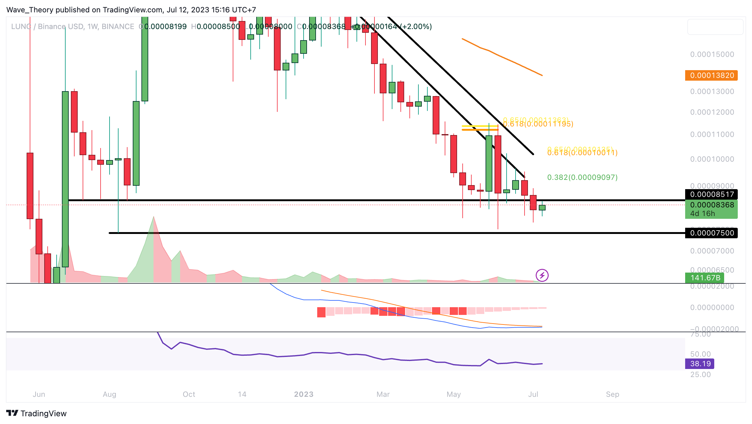 Der LUNC Kurs befindet sich nach wie vor in signifikanter Unterstützungszone. Wenn sie erfolgreich hält, könnte Terra Classic schon bald eine Aufwärtsbewegung initiieren.