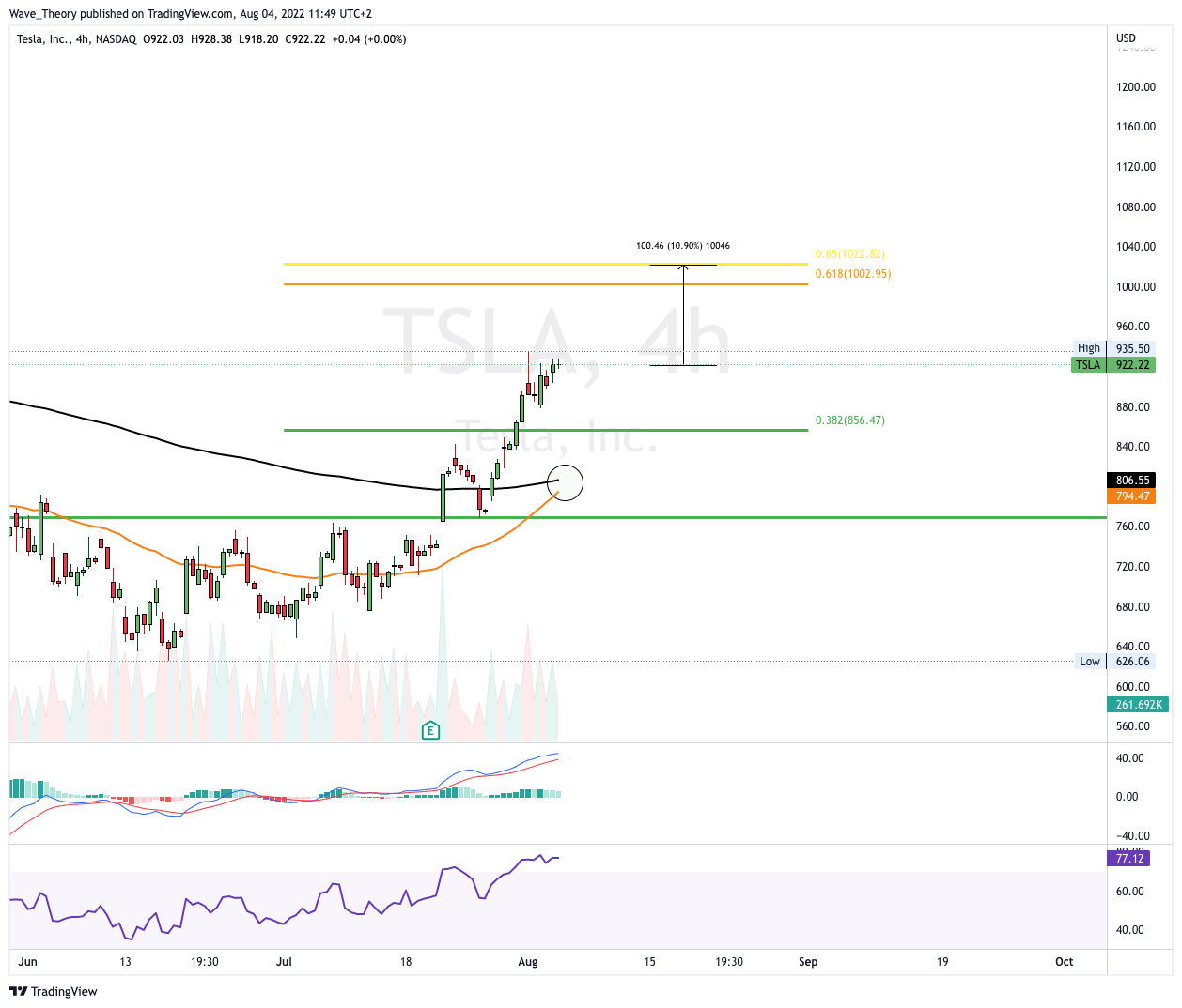 Der letzte Monat verlief extrem bullisch für die TESLA Aktie, denn TSLA stieg rund 38 % im Juli und gibt dabei Hinweise auf eine bullische Trendumkehr. Seit TSLA einen Tiefpunkt bei rund 621 USD etabliert hatte, stieg der TSLA Kurs jetzt bereits über 50 %.