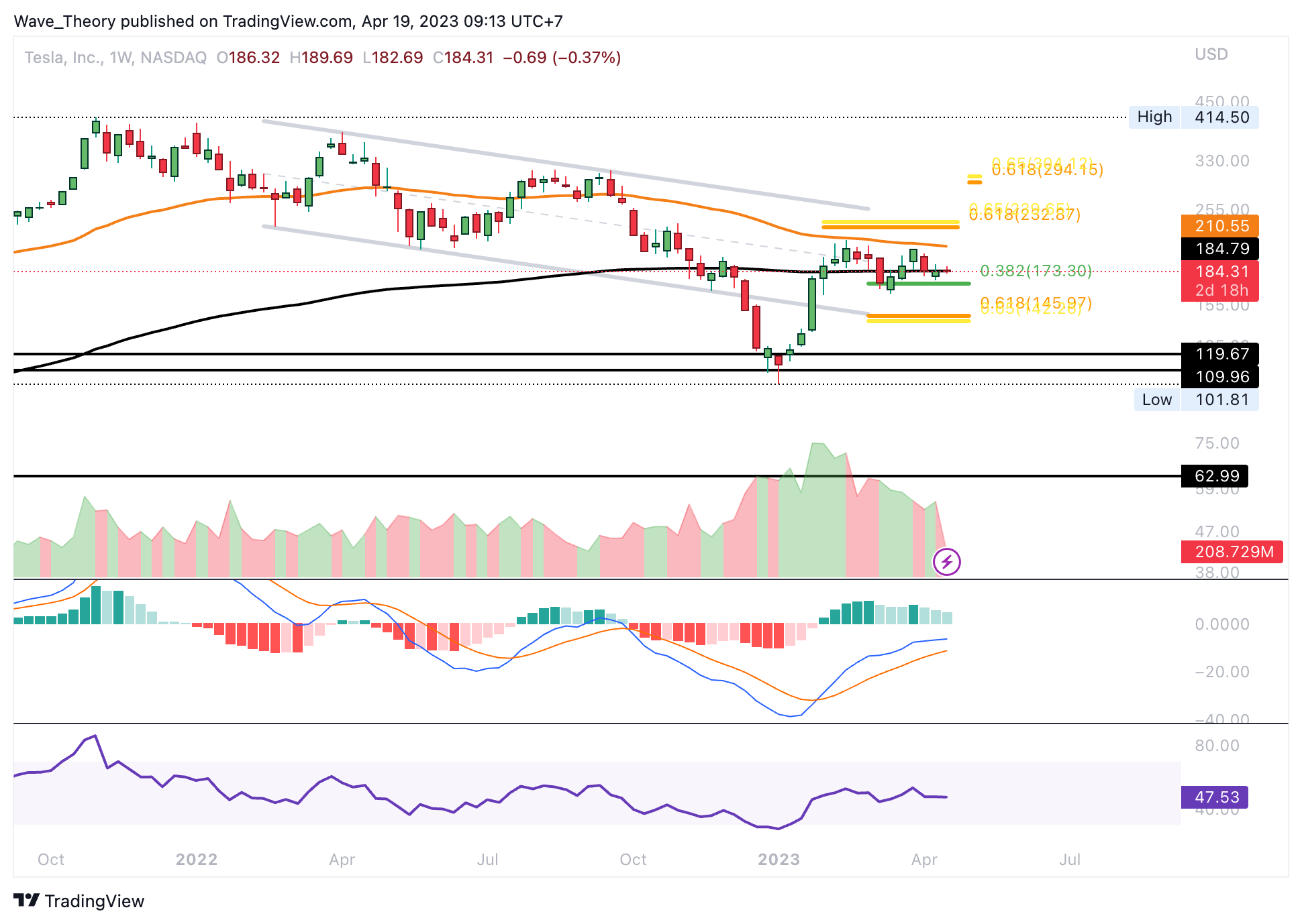 - Der Widerstand des 50-Wochen-EMAs bei rund 214 USD konnte nicht überwunden werden, und Tesla stieß auf bärische Ablehnung, was dazu führte, dass der Kurs drei Wochen in Folge fiel.
