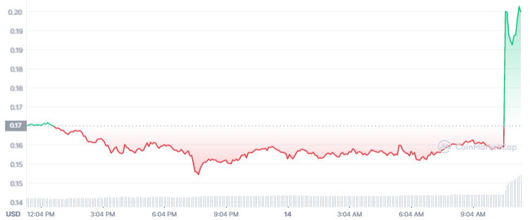 Der Dogecoin Kurs reagierte sofort auf die bullischen News und stieg von 0,1595 US-Dollar auf 0,1915 US-Dollar an. Mit einem Plus von über 20 Prozent ist der Dogecoin Kurs allerdings immer noch weit vom letzten Allzeithoch am 8. Mai 2021 bei 0,7376 US-Dollar entfernt.