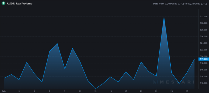 Ein Grund für den Rückgang des Tether-Handelsvolumens ist der allgemeine Rückgang der Krypto-Transaktionen. Im März und Mai 2021 lag die Gesamtzahl der Transaktionen bei rund 20 Millionen bzw. 28 Millionen. Im Gegensatz dazu wurden im Februar und März 2022 insgesamt 4.266 bzw. 4.806 Transaktionen gezählt. Am Ende des Monats März lag die Gesamtzahl der USDT-Transaktionen also 99,976 % unter der Gesamtzahl der Transaktionen vom März 2021.