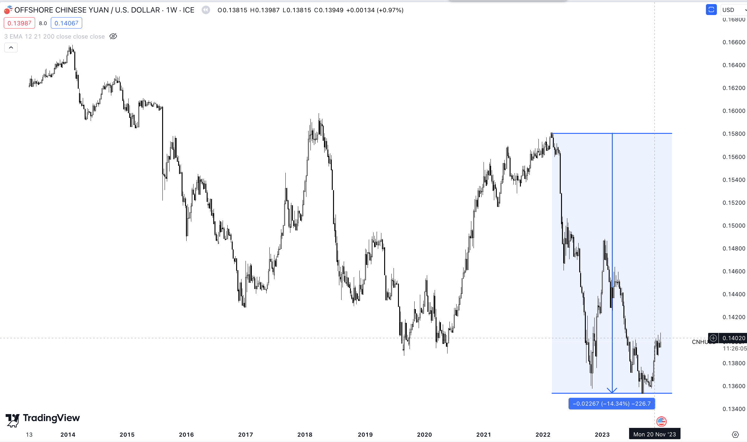 Höchstwahrscheinlich ist dieser Trend auf die starke Abwertung der landeseigenen Währung zurückzuführen, welche allein seit April 2022 gegenüber dem US-Dollar 11 Prozent an Wert verlor. Nicht umsonst betonte die chinesische Regierung die Notwendigkeit einer strengen Überwachung, um finanzielle Risiken zu minimieren und die nationale Finanzsicherheit zu gewährleisten.