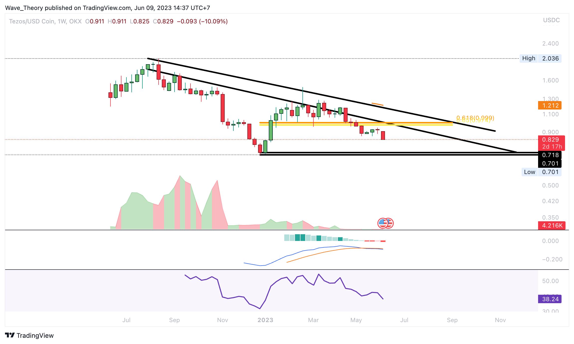 Tezos hat die Golden Ratio Unterstützung bei rund 1 USD bereits bärisch gebrochen