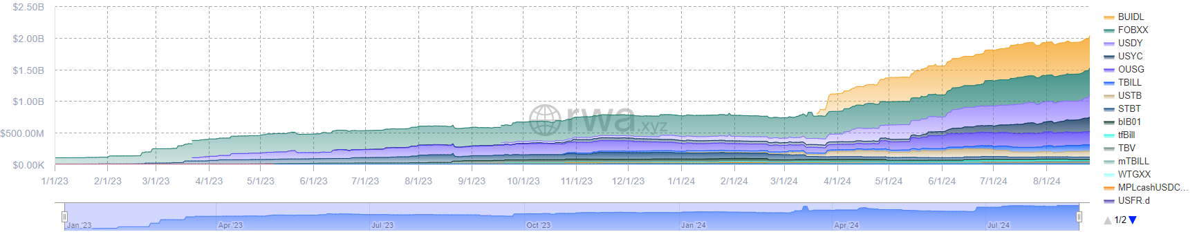 Der jüngste Anstieg im Sektor der tokenisierten, realen Vermögenswerte (RWA), insbesondere der tokenisierten Schatzanweisungen, wird größtenteils der beeindruckenden Leistung einiger Schlüsselakteure zugeschrieben. Zum Beispiel führt der BlackRock USD Institutional Digital Liquidity Fund (BUIDL) den Markt mit einer Kapitalisierung von 502,67 Millionen USD an.