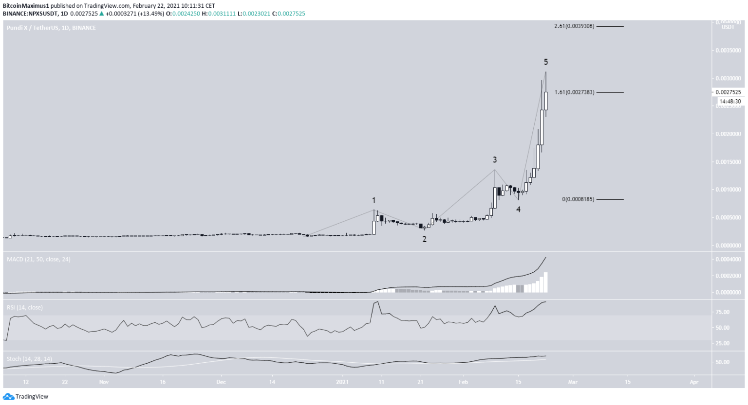 Seit dem letzten Tiefpunkt (0.00001546 USD) vom 23. Dezember 2020 ist der NPXS Preis massiv angestiegen. Am 22. Februar 2021 hat der Preis ein neues Allzeithoch bei 0.0031 USD erreicht und ist damit seit dem 23. Dezember 2020 um ca. 1900% angestiegen.