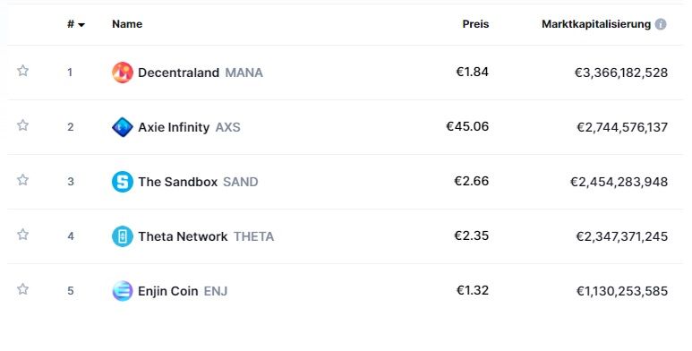 Zu den Assets, die Grayscale möglicherweise aufnehmen wird, zählen unter anderem die bekannten Metaverse- bzw. Gaming-Coins The Sand Box (SAND), Axie Infinity (AXS), und Enjin (ENJ). Außerdem sind Yield Guild Games und Gala weiterere potenzieller Gaming Token Kandidaten. Der Gaming Token MANA (Decentraland) ist bereits Teil der Produktreihe des Unternehmens. So wie es aussieht, möchte die Krypto-Investmentfirma sich nach wie vor einen Anteil am immer größer werdenden Metaverse sichern.