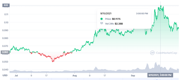 Der TRON Preis scheint von den bullischen News positiv beeinflusst werden. Von etwa 0,049 US-Dollar Ende August hat sich der TRON Kurs Mitte September auf 0,1175 US-Dollar entwickelt. Momentan rangiert der TRON Preis bei etwa 0,09 US-Dollar, ist somit seit dem Dreimonatshoch bei 0,1175 US-Dollar wieder gesunken.