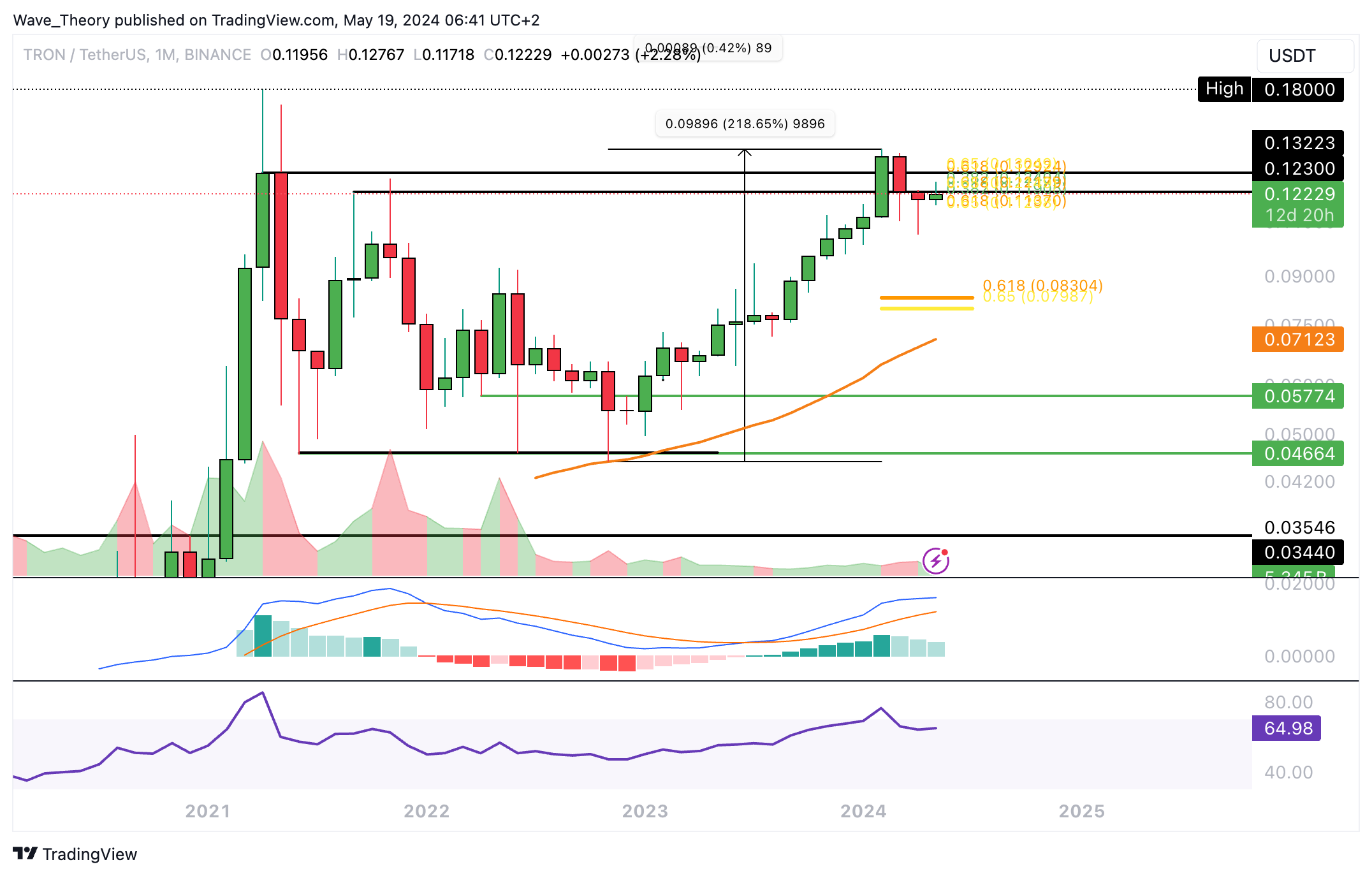 Wird der TRX Kurs schon bald die Golden Ratio bei rund 0,13 USD brechen können?