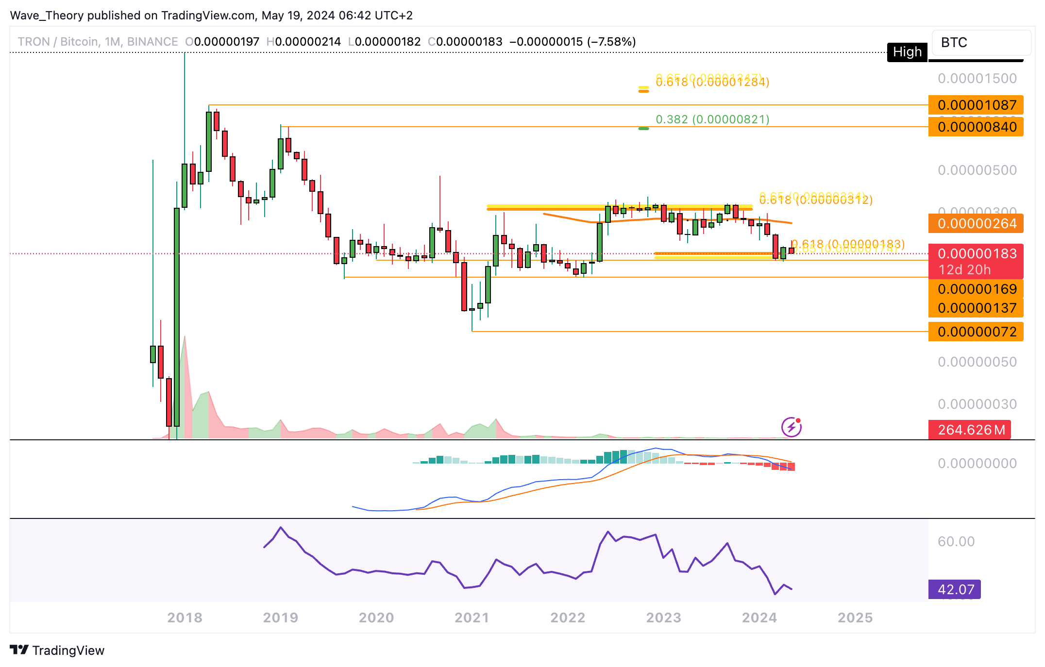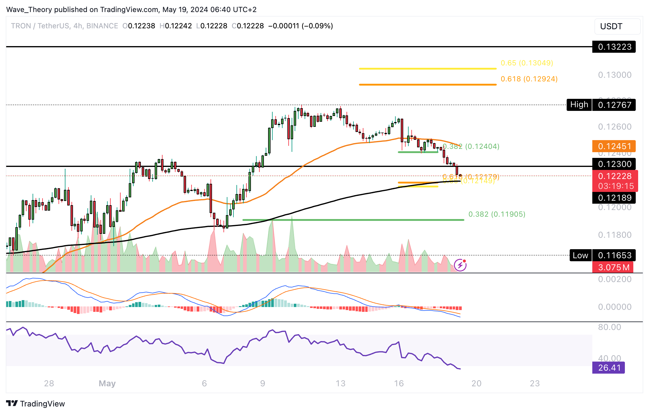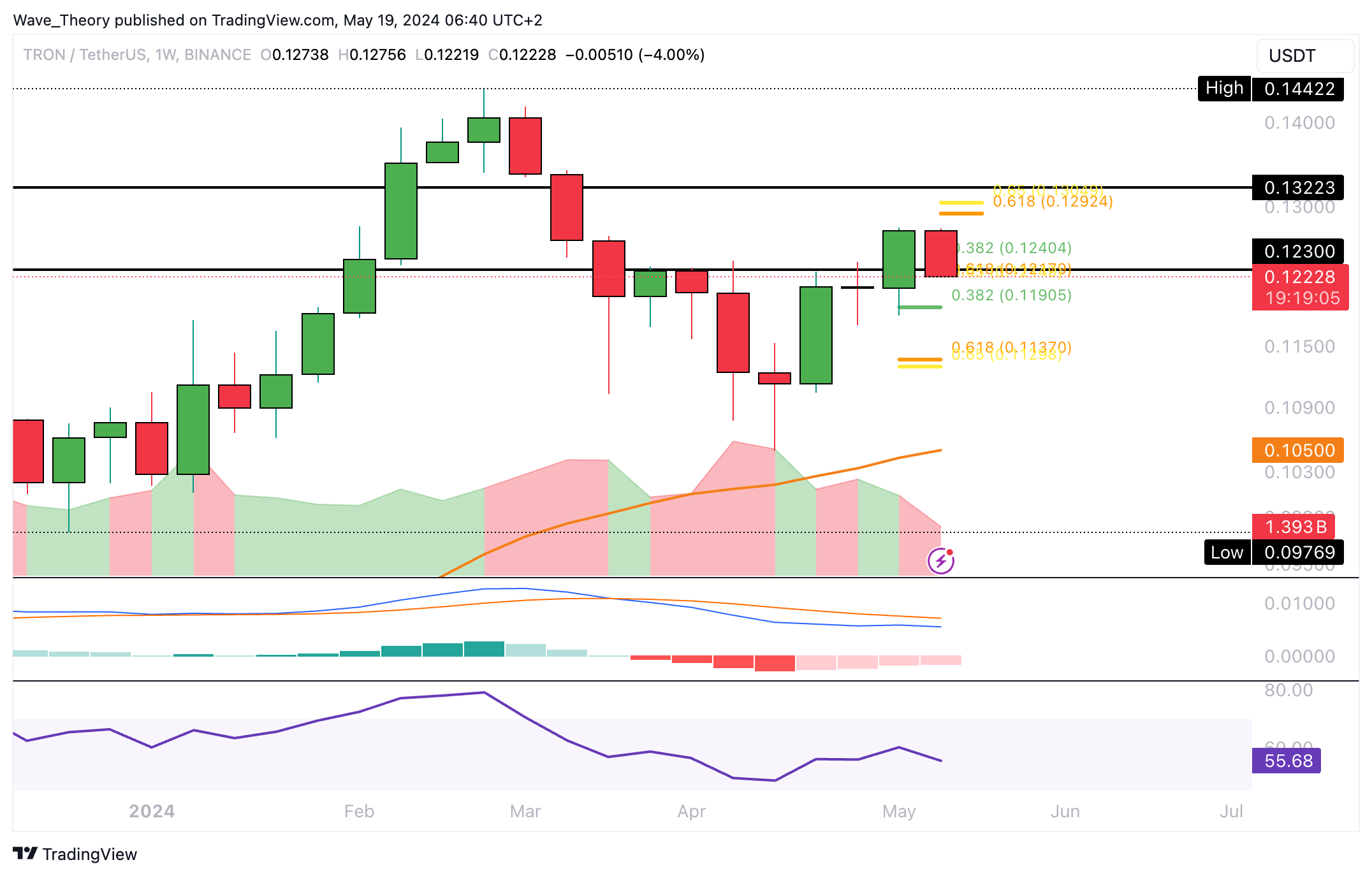 Jedoch konnte TRON den Golden Ratio Widerstand bei rund 0,13 USD nicht überwinden. Damit bleibt die Korrekturbewegung bärisch intakt.