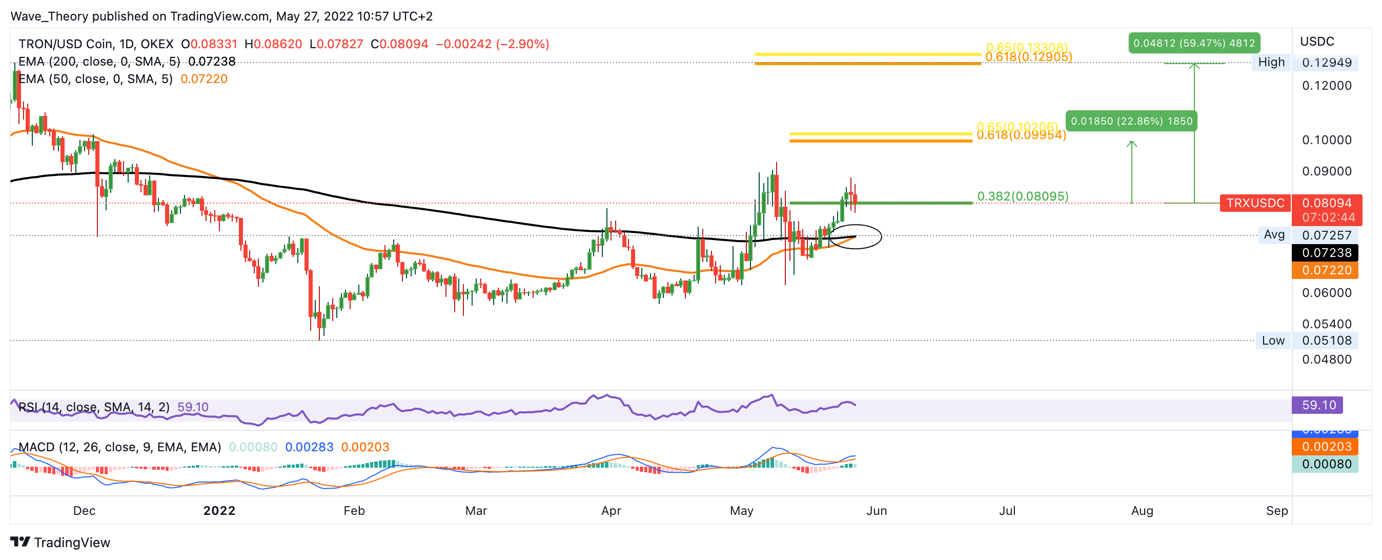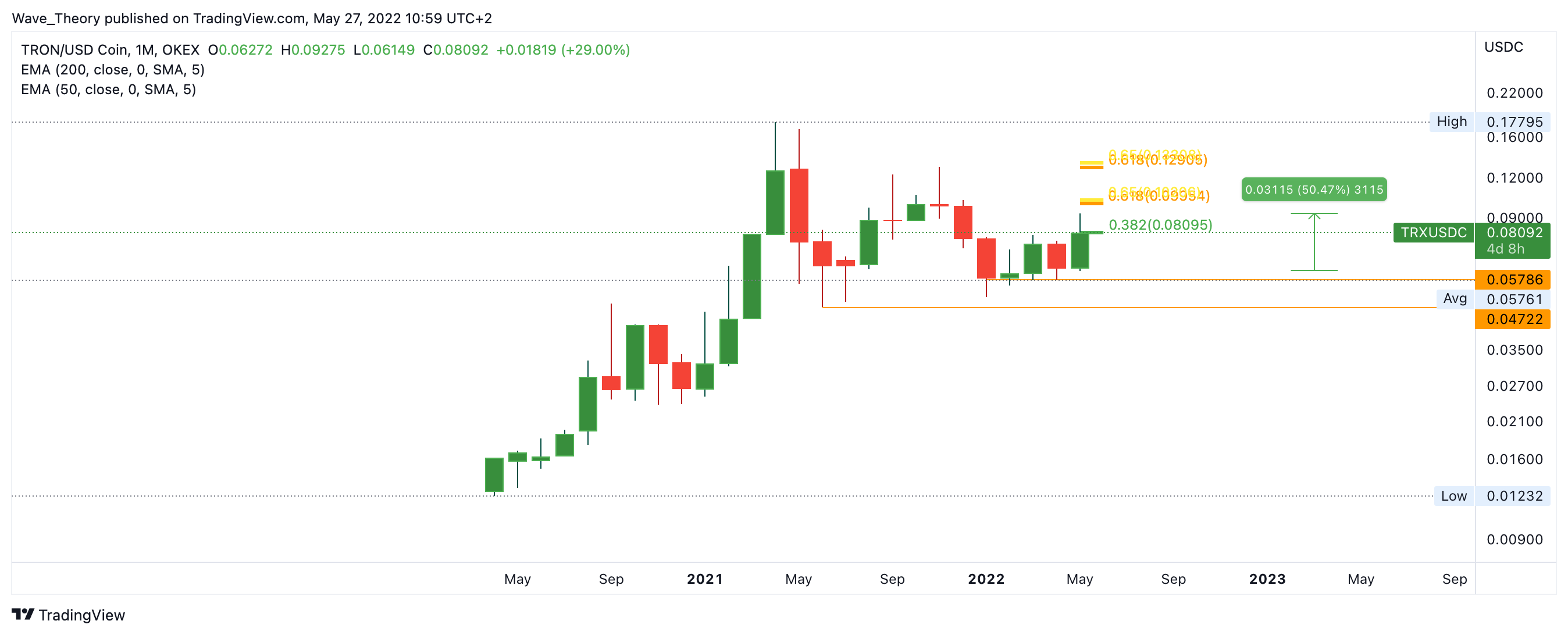 Erst wenn TRON die Golden Ratio bei rund 0,13 USD überwindet, ist TRON in einem neuen Bullenzyklus. Bis dahin befindet sich TRON nach wie vor in einer Korrekturphase, auch wenn es aktuell sehr bullisch aussieht.