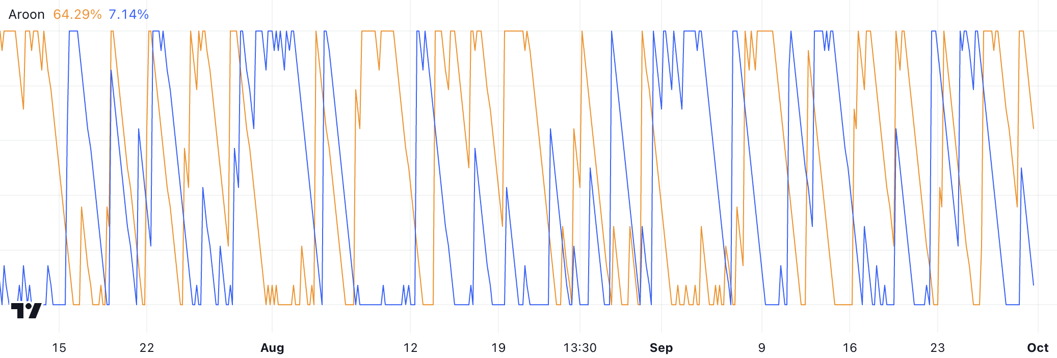 Umgekehrt zeigen Werte unter 30 Prozent eine Abschwächung des jeweiligen Trends an. Im Fall von Tron signalisieren die aktuellen Aroon-Werte einen etwas positiven Schwung, aber keinen dominanten Aufwärtstrend.