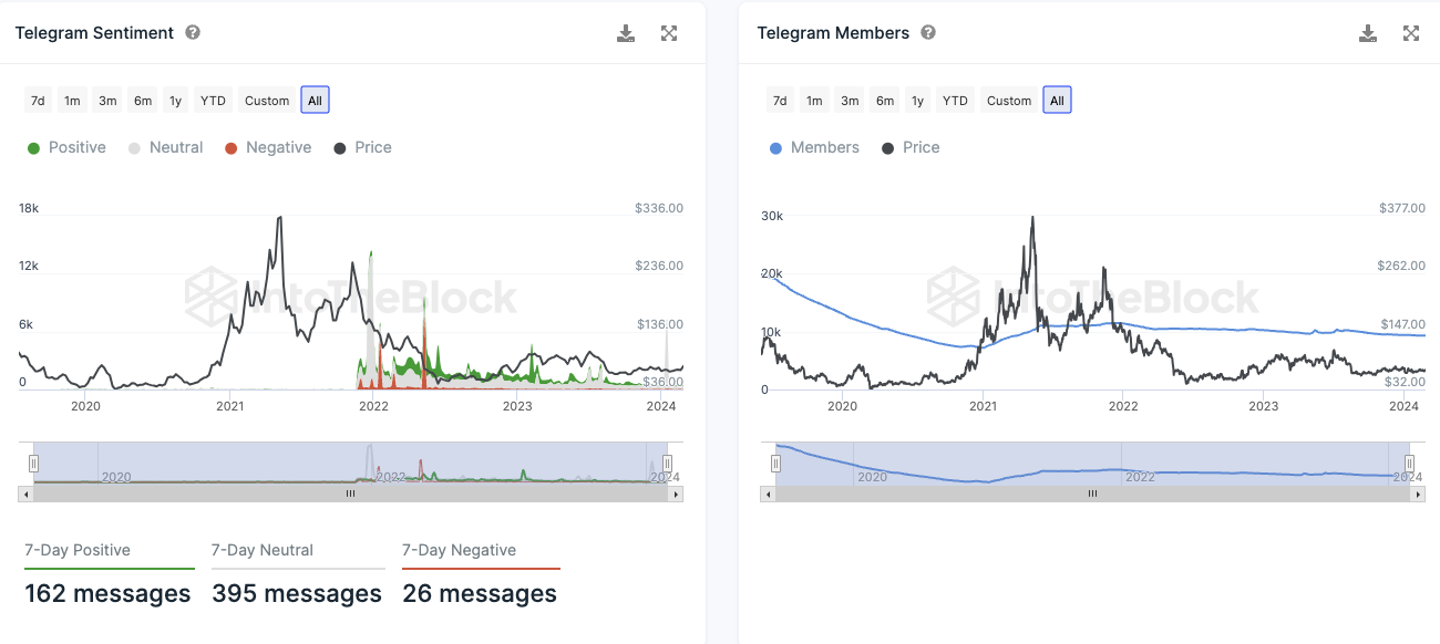 In der vergangenen Woche zeigte sich in der LTC-Community auf Telegram ein überwiegend positives Stimmungsbild mit 162 positiven und 26 negativen Kommentaren. Trotz dieser positiven Einstellungen erlebt die Litecoin Telegram-Gruppe derzeit einen Mitgliederrückgang anstatt eines Anstiegs.