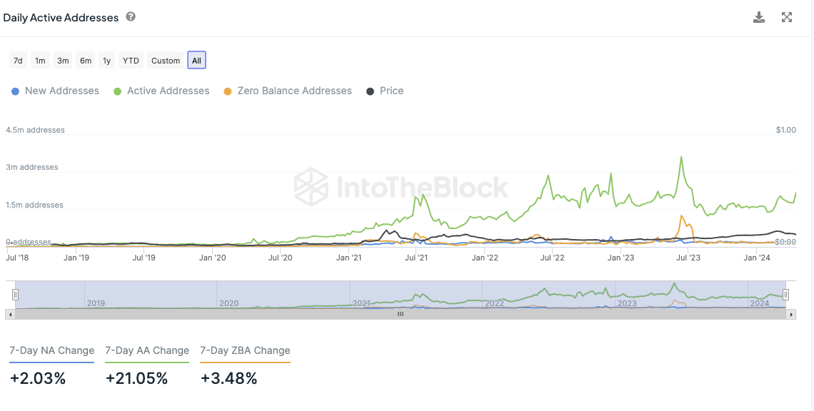 Wir analysieren die Trends und Entwicklungen von Tron (TRX) durch eine detaillierte On-Chain Untersuchung der Daten, die von IntoTheBlock bereitgestellt werden.