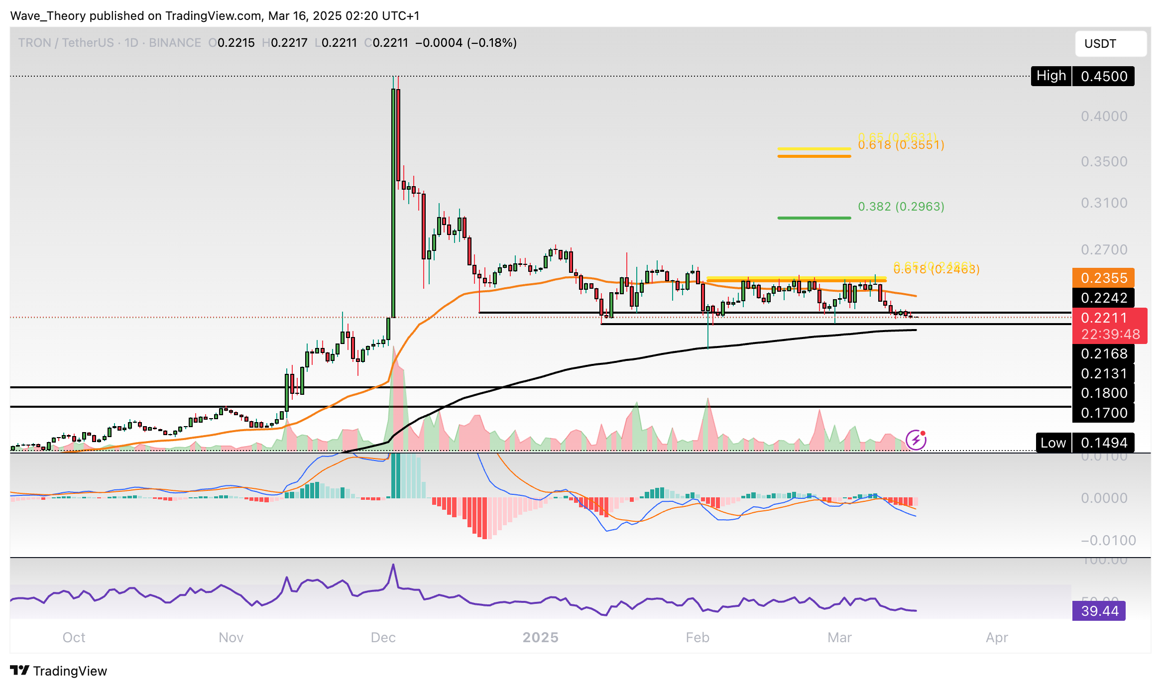 TRON-Prognose für Sonntag, 16. März 2025: Der TRX Kurs stößt jetzt auf kritische Unterstützung. Kann der Kurs bullisch abprallen?