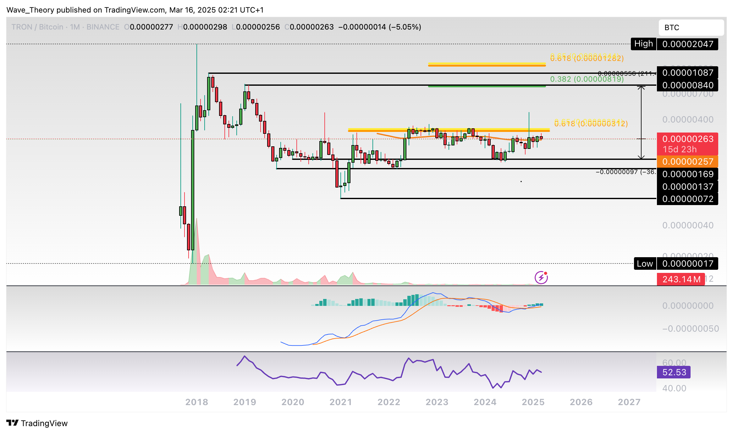 Gegen Bitcoin stößt TRON jetzt erneut auf Golden Ratio Widerstand