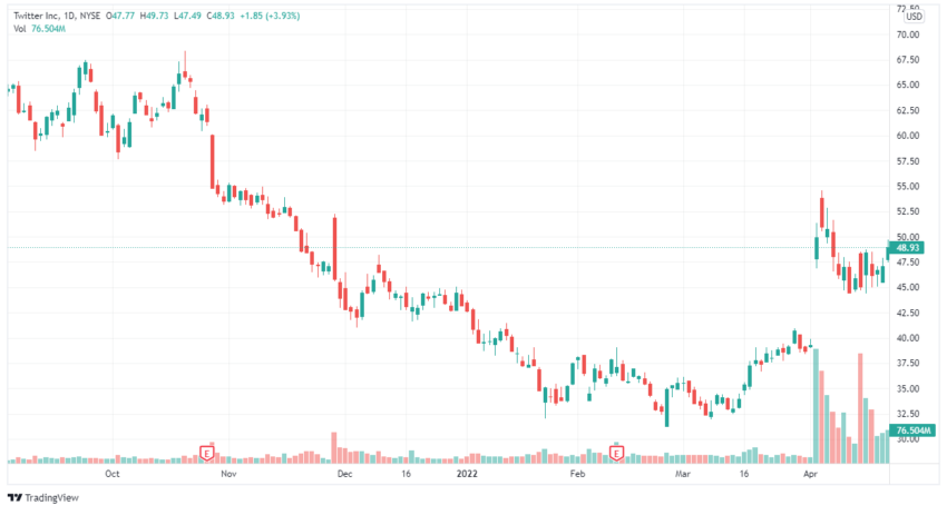 Die Twitter-Aktie wurde von den News natürlich stark beeinflusst. Nach der Ankündigung von Elon Musk stieg der Kurs zunächst stark an, fiel dann aber wieder ab. Insgesamt ist die Aktie im bisherigen Jahresverlauf gestiegen, auch wenn sie Anfang 2022 einen Tiefpunkt erreicht hatte.