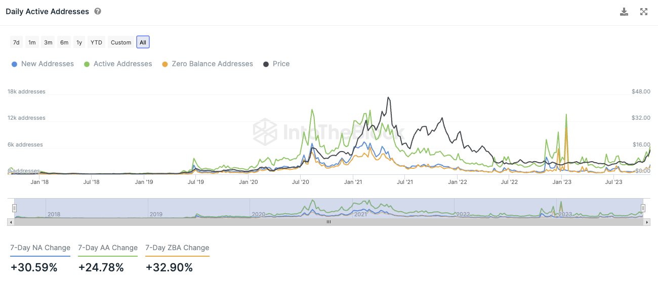 Die Aktivität im Chainlink Netzwerk hat in den letzten sieben Tagen stark zugenommen