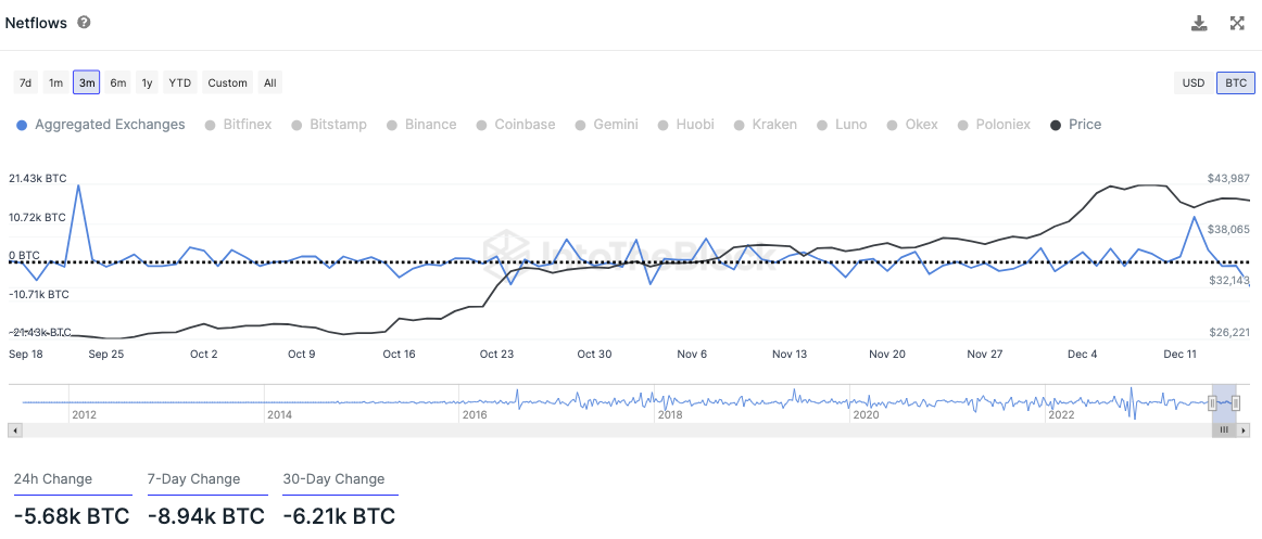 Derzeit werden mehr BTC von Börsen abgezogen als eingezahlt