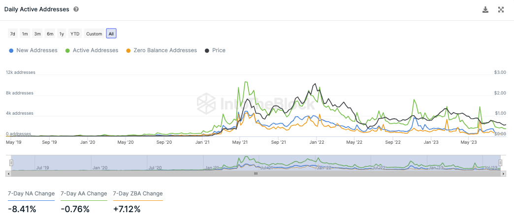 Die Anzahl an neuen Adressen ist in den letzten sieben Tagen hingegen um rund 8,4 % gefallen. Auch die Anzahl an aktiven Adressen im Netzwerk ist um fast 1 % zurückgegangen. Adressen, ohne MATIC Guthaben, sind dabei aber um rund 7 % gestiegen.