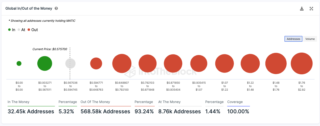 Immer mehr Polygon Adressen geraten in die Verlustzone. Mittlerweile sind es über 93 % der MATIC Adressen. Sind es bald alle Adressen?