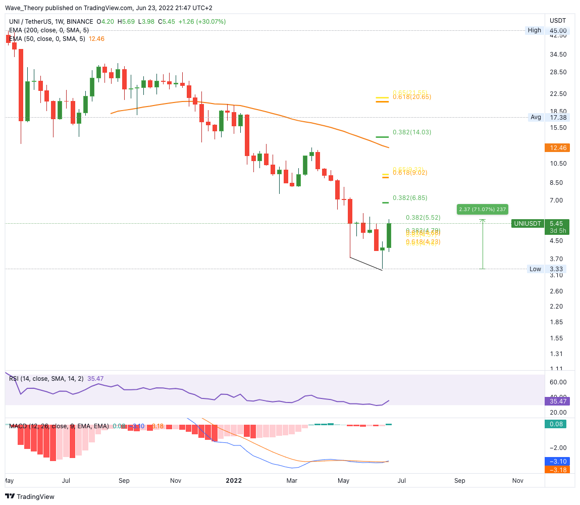 Der UNI Kurs konnte rund 71 % steigen, seit er letzte Woche den Tiefpunkt bei 3,33 USD erreichte. Ist dieser Kursanstieg nur der Anfang?