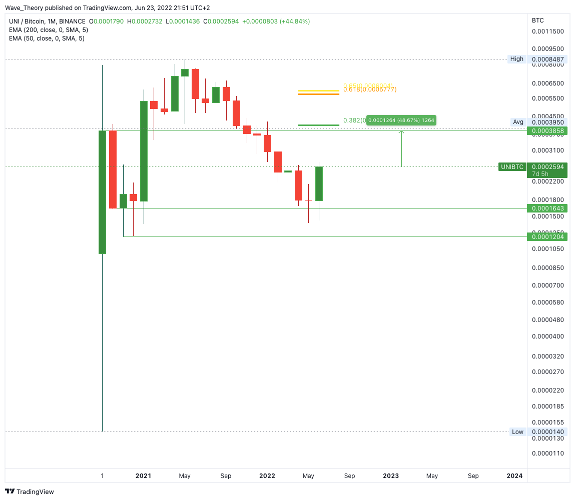 Gegen BTC könnte der UNI Kurs jetzt rund 50 % steigen
