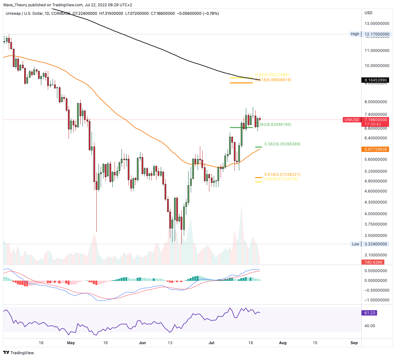 UNI Kurs bricht 0,382 Fib Widerstand bei rund 6,85 USD bullisch